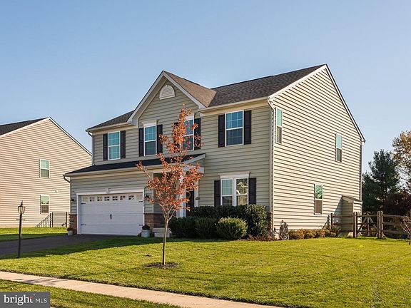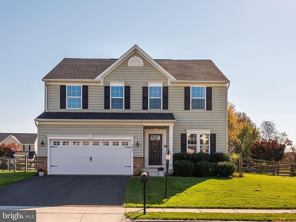 Beautiful 4 Bedroom 2.5 Bath 5 year young Colonial in desirable Macoby Run! This Milan Model has the Kitchen Bump out which creates a beautiful spacious Eating Area w/ a wall of windows overlooking the picturesque level rear yard w/ lovely view. The Family Room has a convenient Gas Fireplace and is open to the large Kitchen w/ spacious center island/breakfast bar. The front two rooms are the Living Room and Dining Room on the original floorplan, but flex nicely into whatever works best for your needs. (currently a Craft Room and Sitting Room). The Primary Bedroom has a Tray Ceiling and two Walk-in closets and a lovely Ensuite Bath. The three additional bedrooms are all nicely sized. The Hall Bath has two convenient sinks, Convenient 2nd floor laundry room. The Lower Level is Finished w/ Surround Sound & plumbed for a full bath plus has ample storage. Feels like Home!