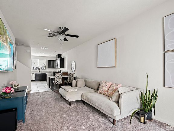 This beautiful townhome offers an exceptional living experience encompassed by elegance and comfort. Located in a peaceful neighborhood, this home boasts nearly 1500 square feet, providing ample space for both relaxation and entertainment. The main living area is adorned with large windows that allow natural light to flood the room. The well-appointed kitchen is a chef's dream, featuring modern appliances, granite countertops, plenty of cabinet space, and a breakfast bar for casual dining., The adjacent dining area offers a perfect setting for family meals and gatherings. There are two primary suites, complete with ample closet space and luxurious ensuite bathrooms, as well as a private laundry room with cabinets located on the top floor. Step outside to the covered patio which awaits outdoor dining and relaxation. Situated in a prime location, this home is within close proximity to shopping centers, restaurants, and schools including TMCC and the University of Nevada, Reno. With easy access to major highways, commuting to Lake Tahoe is a breeze.