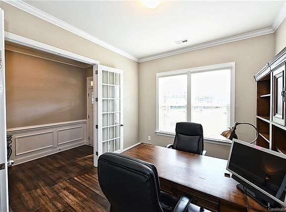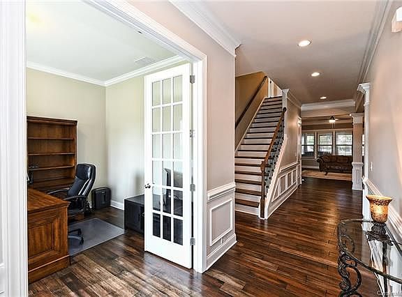 Popular Master on the main Somerset plan. Spacious & open w upgraded gourmet Kitchen, large GR & DR. Main floor offers add'l TWO Beds, Full Bath PLUS Office w/French doors. Beautiful wide plank hdws, granite countertops, extensive crown moulding, just some of the 60K + upgrades. 2nd floor has 2 large bedrooms (or bonus room), full bath and large closet/storage space. On Cul-de-sac w/ tree-lined backyard. 3 car garage. 3-Seasons Room Addition in w/vaulted ceiling & EZE Screen/Window panels.