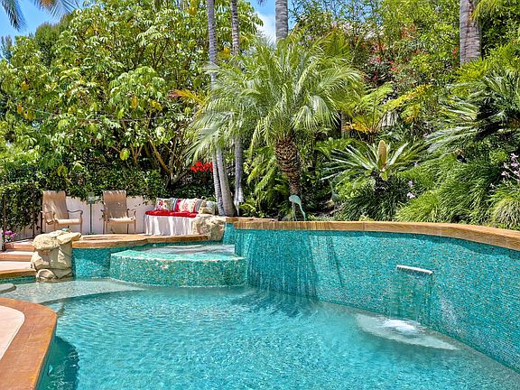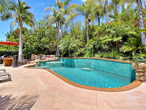 Located on a desirable cul-de-sac in El Encanto this spacious pool home offers 5 bedrooms & 3 baths. This open floorplan offers a main floor den/office (5th bdrm) complete with built-in desk & cabinetry. The formal living room has lots of windows and vaulted ceilings to let the natural light in. Adjacent is the formal dining room with French doors to access the back patio. Remodeled gourmet kitchen features white cabinetry, granite counter tops, center island, walk-in pantry, built-in Sub-Zero refrigerator, double ovens, 5 burner stove top, along with lots of counter space & plenty of windows to look at your backyard oasis. Huge master suite offers ceiling fan, retreat and large walk-in closet with built-ins. Additional features include hardwood flooring, Plantation shutters, ceiling fans, neutral paint throughout, cathedral ceilings, recessed lighting & solar panels. Surrounded by lush tropical landscaping this private backyard is perfect for relaxing & entertaining with the sparkling pool, spa, built-in barbecue, fire pit, exterior lighting and abundance of patio space. Attached three car garage is lined with epoxy flooring & offers plenty of storage space. Close to award winning elementary & middle schools, green belts, hiking trails & community park.