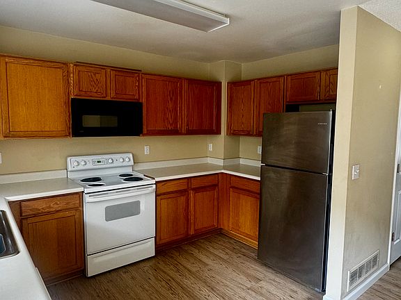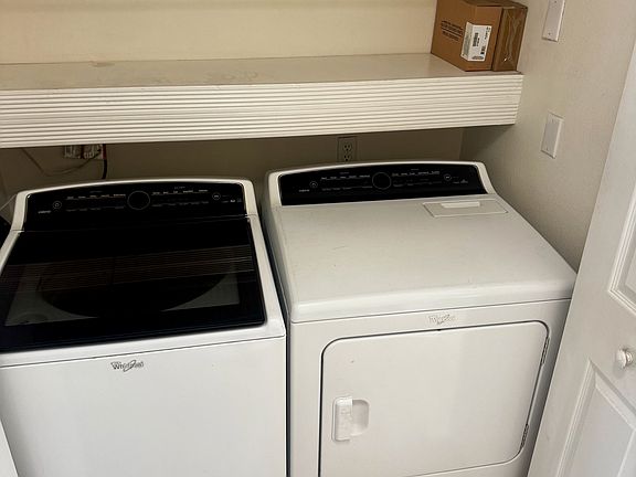 Nice two story, 2 bedrooms upstairs each with their own bathroom/shower. New refrigerator, new flooring, and carpet and paint. Two reserved parking spaces. Small fenced in area in back. Washer and dryer in unit. Prefer a long term tenant. Owner pays for water, renter responsible for gas and electric, cable and internet. No smoking allowed.