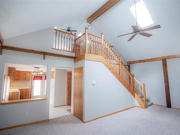 Don't miss out on this affordable Pendleton home with lots of character and charm! Updates include: newer roof, replacement windows, furnace, central air, water heater and automatic awning on back patio. Both bathrooms have been nicely updated. All kitchen appliances included. Two story living room with skylights, vaulted ceilings featuring beautiful staircase leading to loft that overlooks. Loft has full bath and closet. Cute covered front porch (perfect for your rocking chair or porch swing) and an AMAZING 2 car detached garage with over sized garage doors and an upstairs for TONS of storage~ every man's dream! Hurry, this one won't last long!
