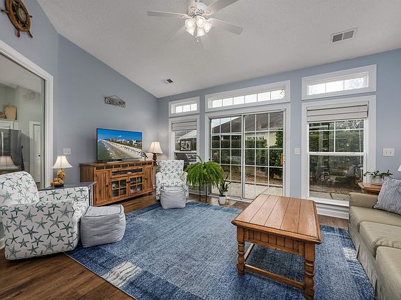 Discover your dream home in the coveted Longbridge neighborhood of the prestigious Barefoot Resort & Golf Community. This stunning Calhoun floor plan offers a blend of elegance, comfort, and functionality, featuring 3 bedrooms, 2 baths, a versatile study/den, and a sun-filled Carolina Room. The home welcomes you with a double-door entry leading into a tiled foyer. The open floor plan boasts 12-foot ceilings and showcases the perfect balance of hardwood and tile flooring throughout. Natural light pours into every room, highlighting the modern design and thoughtful layout. The kitchen is a chef's delight, featuring vaulted ceilings, granite countertops, stainless steel appliances, a breakfast nook, and a spacious pantry. The living room impresses with a feature wall, built-in shelving, and a cozy fireplace, while the formal dining room offers a sophisticated space for entertaining. The primary suite is a tranquil retreat with a tray ceiling, ceiling fan, and an ensuite bath featuring double sinks, a soaking tub, and a walk-in shower. Two additional bedrooms with ceiling fans and a shared bath are conveniently located near the foyer, providing privacy and comfort for guests or family members. With a finished Carolina Room and a Study, the flexibility to use these spaces to meet your families needs creates many possibilities. Situated on a beautifully landscaped corner lot with expansive side yard, the property includes a two-car garage with ample storage. Step outside and immerse yourself in the Barefoot lifestyle, with access to the Residents Club amenities, including a pool, playground, newly resurfaced pickleball and tennis courts, and a full-time Lifestyle Director. Golf enthusiasts will appreciate the TRANSFERABLE GOLF MEMBERSHIP and the four championship golf courses. Additional community highlights include miles of walking and biking trails, a deep-water marina, two large swimming pools, and a private beachfront cabana with seasonal shuttle service. Conveniently located near Barefoot Landing, the Alabama Theater, the House of Blues, shopping, dining, and the pristine beaches of North Myrtle Beach, this home offers a lifestyle like no other. Come experience the perfect blend of luxury, comfort, and convenience in this remarkable residence. Schedule your showing today and see why Barefoot Living is truly a lifestyle!