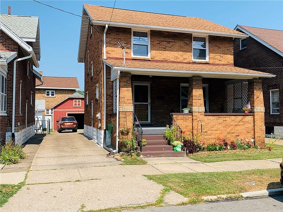 THIS SOLID BRICK STUNNER HAS IT ALL! NEWER REPLACEMENT WINDOWS THROUGHOUT THE WHOLE HOME, CENTRAL AIR, NEWER PEX PLUMBING, NEWER HOT WATER TANK AND FURNACE IN THE LOWER LEVEL. THREE GENEROUS SIZED BEDROOMS WITH FULL BATH ON THE SECOND FLOOR. LARGE FULL BATH IN LOWER LEVEL AS WELL. BUILT IN STORAGE AND PLENTY OF CLOSET/ATTIC STORAGE SPACE. REAR FENCED YARD WITH OVERSIZE 1 CAR DETACHED GARAGE. LARGE FRONT PORCH WITH NEW FLOORING.