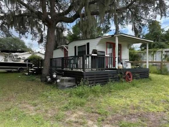 Charming tiny home 1 bedroom 1 bath 473sq ft of living with porch 743 sq ft. Located minutes away from Lake George and Silver Glen. Property includes private deeded access to the marina's boat ramp for residential owners only. Trailer has been remodeled in 2012 along with a new drain field and well in 2013. Recently was fenced in 2023. Also includes Rv hookup. Property is divided in 2 lots.