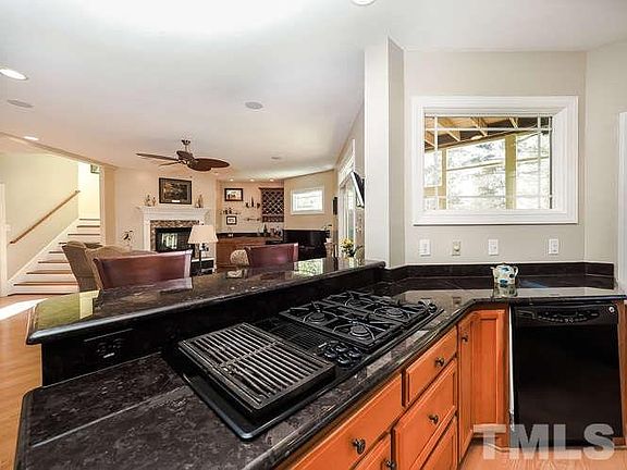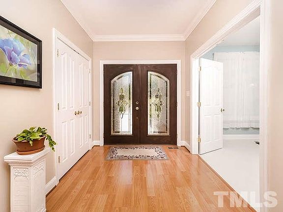 Breathtaking 4 bedroom unique luxury home on gorgeous private lot w/screen porch! Theatre room w/stage & costume changing rm for your home productions. OASIS Master Suite features Roman Style Bathroom w/stately jacuzzi w/inline heaters, private deck, local potter created sink bowls & his/her walk-in closets. Kitchen features granite counters, walk-in pantry, farmhouse sink, island & butler pass thru. Only minutes from Cary/Raleigh. Comm.features award winning golf course, gym, pool, soccer, trails etc.