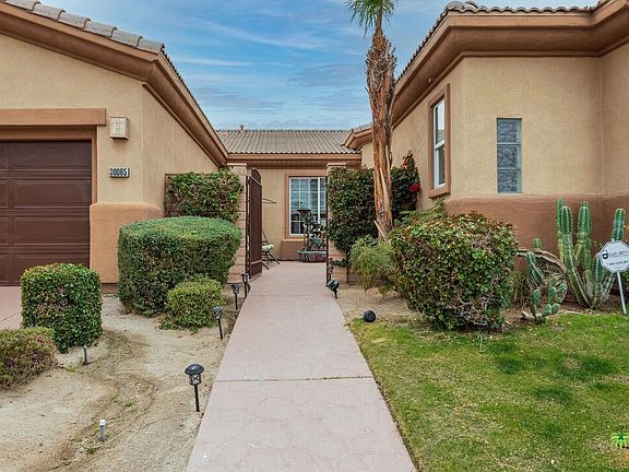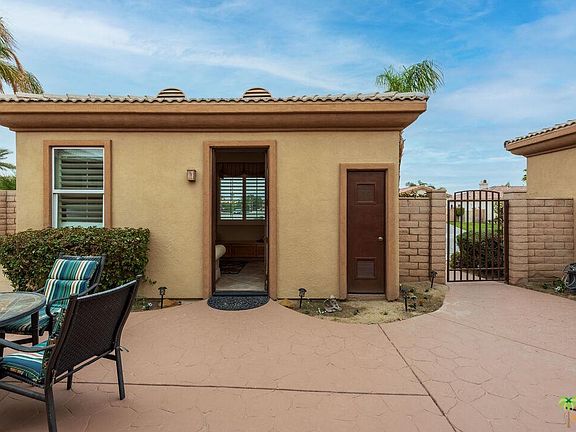 Rarely available, this large 3 bedroom and den plus guest casita home is located in Tapestry, Cathedral City's most desired neighborhood. The owner has spared no expense in making this home a real show-place. The residence features a private gated entry patio, large living room/dining room with a separate family room off the chef's kitchen featuring custom cabinets, built-ins and a large gas fireplace. The great room opens to a spacious study with custom built-ins. (This could be bedroom #4 in the main house) The master is a true retreat with a walk in closet featuring a custom closet system. The two additional bedrooms in the main house are large with mirrored closet doors. The guest casita is separated from the main residence by a large protected patio ready to enjoy on cool nights. The entire home features plantation shutters. The HVAC system was replaced two years ago. The entire home has been professionally maintained and is a must see.