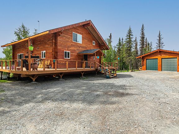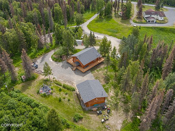 ALASKAN PARADISE!!! This BRAND NEW stunning open concept log home boasts 3,840 sq. ft. 3 bed/2.5 bath custom built & over built home. All the privacy you desire tucked back in the trees w/2.26 acres. Amazing attention to detail inside & outside this home that took 2 years to complete. YOU will love the oversized living room, formal dining room, large family room, and massive bedrooms throughout.This home is SUPER efficient averaging les then $200 a month to heat. The electric is also super affordable. This home comes with a FREE home warranty through America's Preferred Home Warranty, Inc. Warranty packet is attached in the listing docs. You will enjoy the oversized wrap around deck off the main living area. This property has a LOT of parking area for all your vehicles and toys. The 1306 sq. ft. shop is HUGE with a mezzanine above for extra storage. Shop measures 28 by 36 w/10 X 10 doors. Shops sq. ft. includes the mezzanine. Guest cabin is 400 sq. ft. and cute as a button. This property is easy to show-call TODAY!