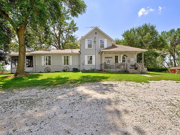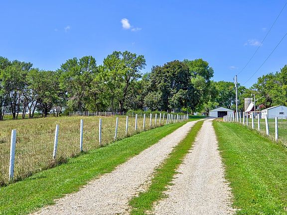 Perfect Hobby Farm that could include some animals and equipment to get started. This acreage is over 6 acres and completely fenced in except for the driveway. The home greets you with a cute open side porch that leads into the mudroom for easy winter transition. You will then walk into a vaulted kitchen that has an eat-in space, hardwood floors & cabinets along with a wall of windows over the sink to allow natural light in during meal preparation. Off the kitchen you will find a full bathroom and laundry. The homes hardwood floors extend into the open dining room. The open concept continues into the large living room that opens onto the screened-in porch on the front of the home. The main floor also has 2 bedrooms, a bonus play room a 2nd full bathroom. Upstairs you will find the elegant master suite with hardwood floors, French doors and 2 rooms for plenty of space. The basement has a non-conforming bedroom, 2nd living space and utility room. The septic was updated in 2016. The property has 2 detached double car garages, barn, 32x45 Machine Shed with 14 ft sides, chicken house and another storage shed behind the barn. You have to see this one to believe it.