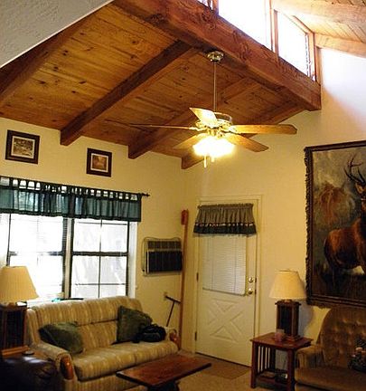 This home is a must see and is ready to move in! The owner has shown extreme pride in all of the improvements made to this split floor plan 3-bedroom, 2 bath home. You wouldn't believe it's a manufactured home. The bay windows make the home feel light, spacious and very comfortable. The open great room extends to the eat in kitchen with a breakfast bar. The attached family room features a vaulted knotty pine ceiling with skylight windows, and new carpet throughout. With a 1.02 acre secluded lot, the back yard is your own private retreat with large mature trees and a partially covered deck the length of the home that's great for quiet relaxing or entertaining friends. Over sized garage can accommodate cars/boats and has a separate workshop, utility room and half bath.