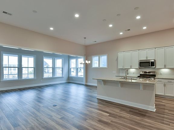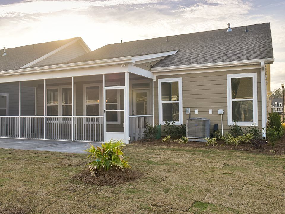 Kitchen offers a large island with breakfast bar, white granite countertops, white cabinetry and opens to the dining area. Main living space leads to the sunroom and screened-in porch. Owner's Suite features coffered ceilings, french doors leading to en suite, two vanities, glass enclosed shower and large walk-in shower.