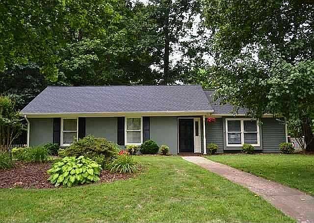 Come see a great location with shopping & dining close-by. This is a dramatically styled ranch w/ updates that include Brazillian Cherry floors in the living/dining/& hallway, tile floors in the kitchen & baths & Granite kitchen counter tops. The cathedral ceiling in the living room adds a spacious feel. The master has a large walk-in closet & launder room for a freezer or 2nd fridge. The fenced bkyd with its large trees & brick paver patio are a outdoor pleasure. Seller is providing a home warranty.