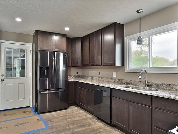 Masterfully remodeled and move-in-ready, this three-bedroom Cortland ranch is ready to stun with its handsome good looks both inside and out! It's hard to miss the style with this one, as modern updates are found at every corner while the home maintains its smooth and soothing monochrome color pallet for a clean feel in each room. Standouts include an elegant kitchen with dark stained cabinets paired with a deep, muted stainless appliance set. Natural colored flooring runs below to contrast the white trim work. The expansive living room benefits from large, corner windows that shed natural light onto the towering central mantle, home to a lovely fireplace. Down the main hall, a stylish full bath sits between the three inviting bedrooms. The master bedroom suite is complete with its own full private bath and tiled stall shower. Down below, a huge lower rec room makes for easy living space or home theatre alike as black painted ceilings give an industrial feel. Every single thing in this house has been replaced! Don't miss out, call today!