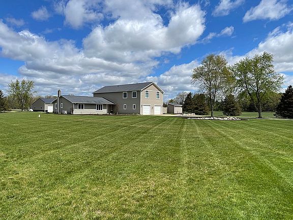 Beautiful custom built country home situated on 10 acres. Perfect for a home based business or hobby farm. 4900 sq ft. 5+ bedrooms, 3.5 baths. Open floor plan with large great room. Gourmet kitchen features custom hickory cabinetry, upgraded appliance package, snack bar, wilson art flooring, and many built ins. In floor heat. upper level has extra large bonus room or future master suite. 2 stall attached garage walks in to a large mudroom with ample storage. Inground heated pool with stamped concrete decking and iron fencing. Central boiler wood fired heat source for home, water, pool heater and outbuildings. Heated 40x80 pole barn, and 30x40 wood shed/barn. Fenced property and animal shelter for livestock. New well in 2018, new gas furnace in 2019