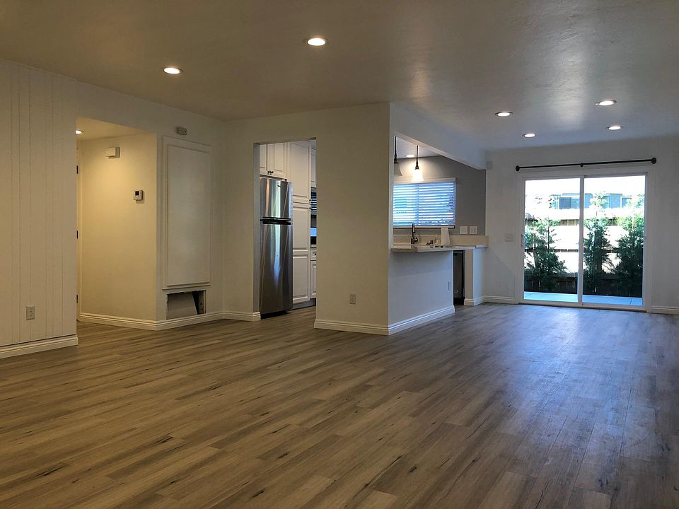 Completely renovated lower unit with beautifully landscaped yard and patio. All new central air A/C &, heater, Kitchen, Baths, recessed lighting, flooring, appliances, marble countertops, blinds, secure entry and electric 2 car garage with W/D hook-up. upgraded decor throughout. Mirrored closet doors in all bedrooms. Located near freeways and shopping. No smoking building and No Pets of any kind. owner pays water, trash and gardner