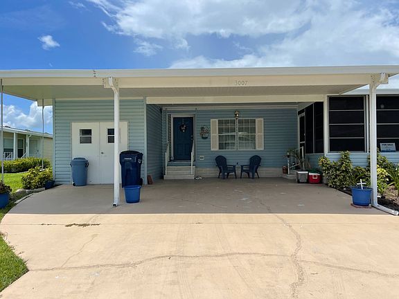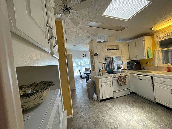 This is a mobile home for sale in a 55+ community on a rented/leased lot. 3007 Kiwi Place, Ellenton FL. 34222 Ridgewood Estates, 55+, Pet Friendly MH Community This is a 2BR/2BA 1992 Palm Harbor Mobile Home with a split bedroom floor plan on a private cul de sac lot. There is a front set lanai with tile floors and vinyl windows. There is side by side parking on the carport. The 2021 A/C keeps is it all cool with 4 years remaining on the warranty. The home is being sold partially furnished. The kitchen has vinyl flooring, a breakfast room and an indoor laundry area with a washer/dryer (included in the sale). The kitchen has updated appliances. The living/dining room area has wood laminate flooring and vaulted ceilings. The master bedroom has laminate flooring and a walk in closet. The master bath en suite has dual sinks, vinyl flooring, a walk in shower and skylight. The guest bedroom has wood laminate flooring and a bowed bay window. The guest bathroom has vinyl flooring, newer fixtures, a shower/tub combination, single sink vanity, vaulted ceilings and a skylight. The lot rent is $900 and includes a 24/7 gated, pet friendly community. There are two heated pools, a hot tub, shuffleboard, tennis courts, horseshoe pit, pool side clubhouse with a library, fitness center and billiards room. There is an 'event' center used for many HOA sponsored events including cards, bingo and chair volleyball, just to name a few..... Florida MH Sales, LLC cannot guarantee or warrant the accuracy of this information, measurements or condition of any property. Buyers are encouraged to perform independent due diligence. The measurements are approximate and the lot rent is subject to change.