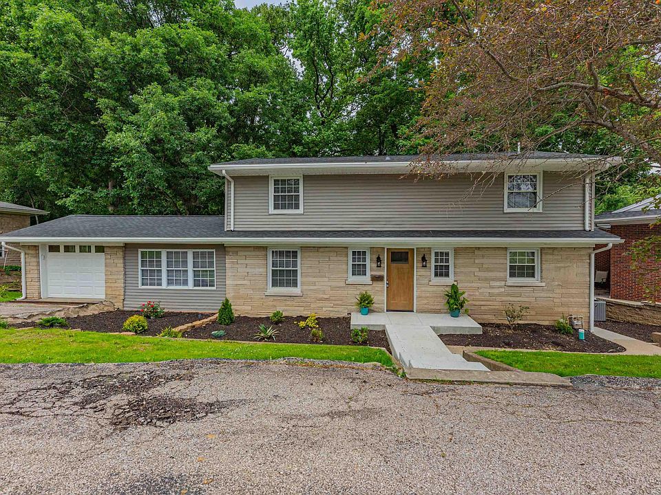Completely remodeled 2 story with finished basement located on quiet road near Helfrich Hills Golf Course on westside!! This special home offers 4 beds 2.5 baths and a completely opened up floor plan offering over 2500 sq ft of quality living space!! Some features include: amazing kitchen loaded with tons of custom cabinetry, custom tiled back splash, grand island with additional storage and a full compliment of new stainless steel appliances; main level en suite has full bath with large standup custom tiled shower, high boy vanity and large walk in closet; 3 bedrooms are located upstairs and each have ample closet space and are serviced by a brand new hall bath with all new custom tiled shower and vanity; large family room is open to kitchen; separate living room has vaulted beam ceilings and leads to all decks and entertaining areas that overlook woods and lower level fire pit; fantastic basement offers plenty of finished square footage to offer additional family space and versatility along with separate unfinished room thats great for storage. Some finer points of mention include: new LVP flooring through out; all new trim package; new paint; new interior and exterior doors; new electric; new plumbing; new roof; some new windows; new HVAC; new front porch and steps; new drywall; new landscaping beds and so much more! A hard to find Westside property!