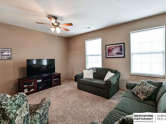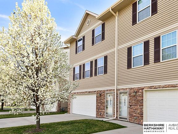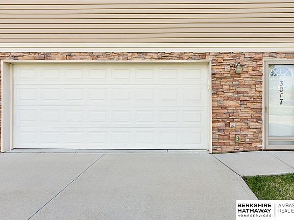 Easy Townhome Living with Close Proximity to Eppley Airport & Downtown Omaha! Two car garage is at street level w/front door. Tile entry w/coat closet & open stairwell to main part of home. Spacious & open 2nd flr features kitchen w/wd laminate flr, island, pantry & stainless steel appliances (refrigerator stays). Kitchen has exterior door to side deck. XL dining area is adjacent to kitchen & living rm w/large windows & ceiling fan. Powder bath w/tile flr & pedestal sink complete this flr. 3rd flr showcases 2 bdrms, 2 baths & laundry area (washer & dryer stay). Primary suite has dbl closets, ceiling fan & 3/4 bath w/tile flr. 2nd bdrm has large closet. Full hall bath on 3rd flr has tile flr. Maintenance-free exterior & vinyl windows. HOA fee is $150/month & includes exterior maintenance, sprinklers, lawn care, snow removal (over 2”) & building insurance. HOA replaced roof in fall, 2022. Just blocks to Shoreline Golf Course & Carter Lake! Pristine inside & out! AMA