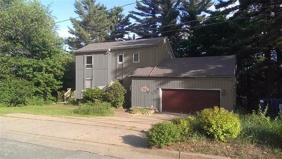 "Intriguing Contemporary" close to Aspirus Hospital! Open concept with balcony above living room. Upstairs 2 bedrooms & remodeled bath, new fixtures, walls & floor coverings. New PEX plumbing throughout house. Main floor bedroom. Full bath on main walk-in tile shower in upper bath, new carpeting in bedrooms & balcony. Huge deck wraps around South & East side of house. Lower level has family rm, bedroom/office with walk-out. Enjoy nature from your deck with room for family & friends. Newer roof.