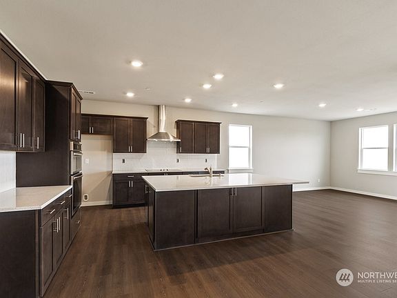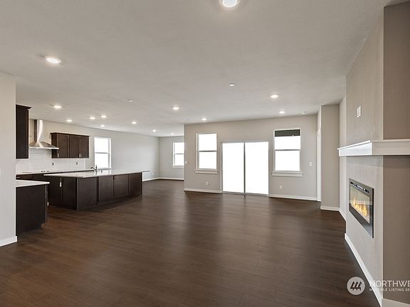 Our Martin home with an intricate open concept plan has 9 FT ceilings and is spectacular- with a spacious great room and connecting Dining room, modern electric fireplace and accented mantel. Large open kitchen with big island, gas range and cabinets with soft close drawers. Quartz counters and full height back splash. Two covered porches with large patio and 3 car garage. Primary bed has 2 huge walk-in closets connected to lg private spa like bath w/ shower and soaking tub. Additional walk-in closet in Bedroom 4. Full front yard landscape included with sprinkler system and irrigation. A/C. Buyers must register their broker on site at their first visit. JUNE Estimated Completion.