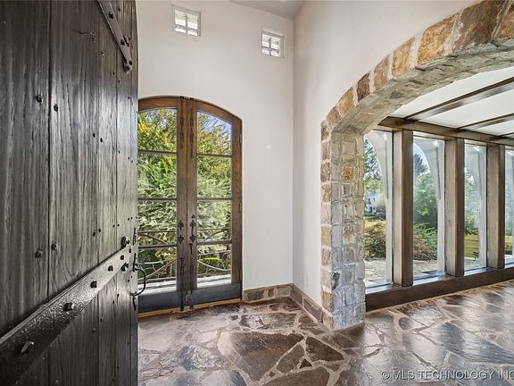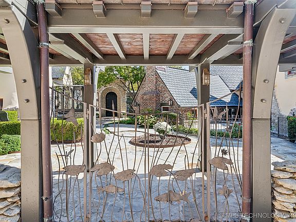 Welcome to your dream residence, a stunning European style home that perfectly blends classic elegance with contemporary comfort. This exquisite property features 2 spacious bedrooms and 2 full baths, along with 2 convenient half baths. Entertain in style with a sophisticated wine cellar and a chic wet bar, ideal for hosting gatherings or enjoying a quiet evening at home. As you explore the beautifully landscaped grounds, you'll be captivated by the terraced flower beds that grace the back of the property, providing a picturesque backdrop for outdoor relaxation. The interior boasts a harmonious mixture of stone and hardwood floors, complemented by custom iron and woodwork that adds character and charm throughout. This home overlooks the serene Crows Creek, offering a peaceful retreat just a short distance from Midtown Tulsa and the renowned Gathering Place. Accessed via a gated private entrance, the property ensures your privacy and tranquility. Step outside to discover your own personal oasis, featuring a sparkling pool and a luxurious spa, perfect for unwinding after a long day. Additionally, a charming guest house awaits, complete with 1 bedroom, 2 bathrooms, and a small kitchenette, making it an ideal space for visitors or as a private retreat. Don't miss this rare opportunity to own a piece of European elegance in the heart of Tulsa!