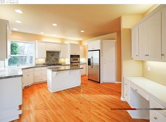 Fantastic dramatic floor plan with all new interior paint and carpet that backs to a lush greenspace with great privacy. Extensive hardwoods, granite, stainless appliances, vaulted family room w/skylights & gas fireplace. Butlers pantry, den & full bath on the main. Level backyard w/spacious deck, partially covered. 3 car garage.
