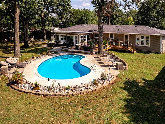 Welcome to Your Ultimate Home Retreat!Step into a world where comfort and excitement blend seamlessly. This unique 3-bedroom, 2,368 sq ft sanctuary boasts 21/2 baths, a bright sun room, a dedicated office, and an in ground pool. A cozy wood burning fireplace brings ambiance to the large great room. The split bedroom floor plan allows privacy for the primary en suite, which contains a walk in closet. A well thought out kitchen area features granite counter tops and stainless appliances. Step out of the sun room to take a dip in the pool! A natural gas fire pit and over 600 sq ft of decking complete the private back yard. Mature trees create a tranquil backdrop for summer barbecues, morning coffees, or a quiet evening under the stars.Discover next-level fun and functionality in the 2,500 sq ft detached garage. One over sized bay has been transformed into a media room with approximately 616 sq ft. It is complete with a full bath, walk in shower, a wet bar, and a Murphy bed for those overnight guests. Both garage bays offer generous storage and a workshop area, plus built-in air capability if you want to add a compressor.Finally, unlock the potential of a fully furnished one bedroom, one bath apartment over the garage, with its own private electric meter and entrance! It features washer/dryer hookups, central heating and air (with optional baseboard heat), and a cozy balcony perfect for your morning ritual.This property is perfect for the extended family! That college student won't have to live in the dorms! Or use it for visiting relatives.Ask your buyers agent for a list of personal property that can convey with an acceptable offer!Listing agent is related to sellers.