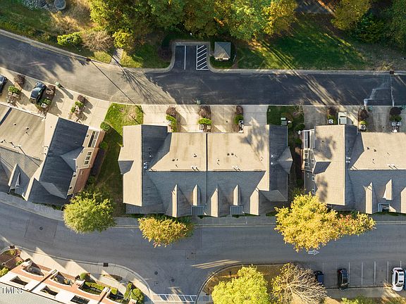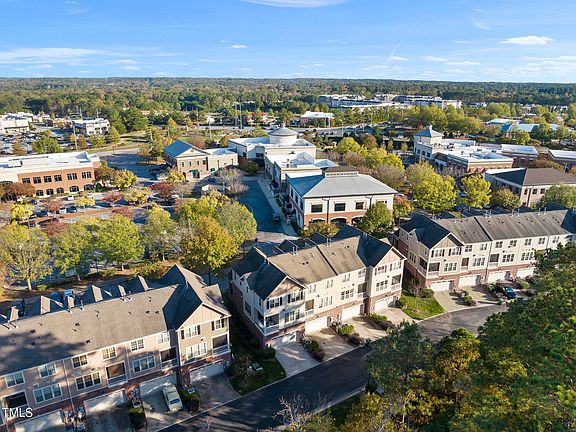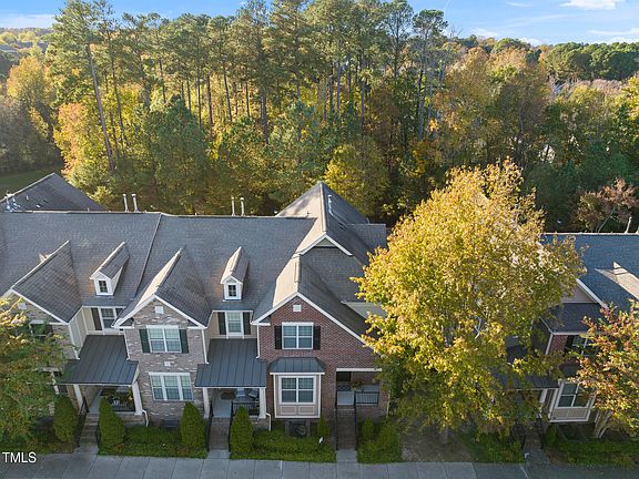 A rare opportunity awaits with this end-unit townhome in the sought-after Enclave at Stone Creek Village. Located just steps from grocery stores, pharmacies, shopping, dining, medical facilities, banks, and other essential services, this home also offers direct access to the Town of Cary Greenway right behind it. With over 2,400 square feet, this spacious 3-story townhouse features 4 bedrooms and 3.5 baths, making it one of the largest floor plans in the community. The home is move-in ready with recent updates, including fresh interior paint, new carpeting throughout, and a nearly-new HVAC system and water heater. The light-filled main level boasts hardwood floors, a private office with French doors, and a gourmet kitchen equipped with a large center island, granite countertops, stainless steel appliances, a gas cooktop with a vented hood, tile backsplash, maple cabinetry, and a pantry. The main floor also includes a spacious family room with a fireplace, a central dining area, and access to a covered balcony. On the second floor, the primary suite stands out with a tray ceiling, a generous walk-in closet, and an en suite bathroom with a granite-topped dual vanity and a tile shower. This level also features two additional bedrooms, a full bath, and a convenient laundry closet. The lower level offers a flexible rec room or fourth bedroom with an additional full bath. Parking is ample, with an attached 2-car garage, a driveway that accommodates two more cars, and public parking available at the front of the building. Additional amenities include whole-house audio and a wired security system. The HOA covers all landscaping, exterior maintenance, roofing, and upkeep of the private access road, allowing for low-maintenance living in a prime location.