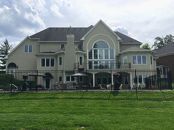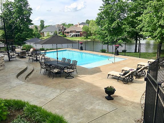 OUR DREAM HOME CAN BE YOURS.. This is a Pristine Executive Home on the lake in Wolf Lake Subdivison. Custom Built One owner home. This home is BETTER THAN NEW, beautifully elegant on the inside and outside. Features include a 4-5 bedroom, 4 full and 2 half baths, 3 car garage, 3 fireplaces, 18 x 40 heated in ground pool with tanning ledge, outdoor kitchen, covered patio, full finished walk out basement, huge bedrooms, 4 walk in closets offering approx.. 6200 square feet of finished living space. The grand two-story entry offers 8-foot double doors and large window with full leaded glass design, 18 foot ceiling, polished porcelain floors with granite design. Custom curved staircase leads to the second floor. The main floor offers a formal dining room with a polished porcelain floor, custom ceiling and built in buffet, formal living room with an incredible wall of windows, and porcelain surround fireplace. The large 2017 remodeled kitchen offers quartz countertops, custom cabinetry, separate dining area with adjoining hearth room and stone fireplace. All with beautiful sand and finish hard wood floors. The luxurious Master Suite also on the main level offers an oversized bedroom with a custom trey ceiling and chandelier with a large master bathroom including a whirlpool tub, his and her vanities and walk in closet. The second floor features two large bedrooms with a shared bath, and a third bedroom with a private bath. It also has a large bonus room that makes a great play room or additional family living space. The second floor cat walk overlooks the great room with a beautiful view of the lake. Next down to the full finished walk out basement, with 9 foot ceilings. This space was completely remodeled in 2014, featuring a tile floor, wet bar with upgraded granite countertops, glass tile two sided fireplace and stunning built in entertainment center. You will also find an office, or 5 bedroom, bath and exercise room. As if this was not enough the expansive outdoor living space is a reason to live here. There is approx. 1,950 square feet of outdoor living space, including a heated in ground pool with tanning ledge, fountains, bubblers, led lighting, (Pool Completed Summer 2013) stamped concrete, hot tub with pavers, 3 custom awnings, covered patio, upper deck featuring Sundek and wrought iron spiral staircase The outdoor Kitchen features a Built In Grill, Beverage Refrigerator, Stone, Upgraded Granite Countertop and Sink. This makes for perfect grilling! All of this overlooks the lake and the treed back yard offers a lot of privacy. Curved concrete steps lead to the driveway and three car garage. Black aluminum fence, with three locking gates. Three A/C and Heating Units. Fully landscaped including stone retaining walls within the fenced area and additional retaining walls at the lake. There is a sprinkler system that pumps from the lake, security system, intercom system, central vacuum, surround sound, water softener, recirculating pump, humidifier, gutter screens. There is a huge walk in Storage Area with a Utility door to the back yard. This makes it easy to store outdoor furniture. There is a ton of storage in this house! The pool table, hot tub, and basketball goal all remain. Price includes all appliances except washer and dryer. The neighborhood offers a clubhouse, pool, tennis court and walking trail. Please text or call 812 989 4712 or email kvery@icloud.com for a private showing. Buyers agents Welcome!