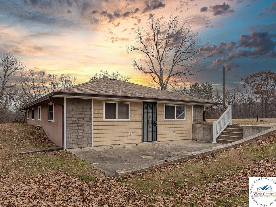 Great county living and super energy efficient. 3 Br, 2 Ba earth contact home with central heat & air- all electric. 2 acres m/l unrestricted on blacktop, close to town and Lake of the Ozarks & Truman Lake. Terrific 54 x 32 metal building with concrete floor and door openers- will hold all your lake toys. Also (2) 2 car carports with concrete floors to park vehicles under. Better hurry!!