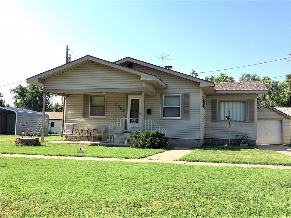 MOVE-IN ready! Well taken care of PLUS good location. 2 bed/1 bath with nice tile in kitchen & utility. Newer garage door, screen door & hot water heater. Maintenance free vinyl siding. 1 car detached garage & fenced in backyard. PRICED TO SELL!