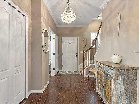 - Interior Features: Eating Space In Kitchen, Open Floorplan, Walk-In Closet(s), Crown Molding, Solid Wood Cabinets, Kitchen/Family Room Combo, Solid Surface Counters