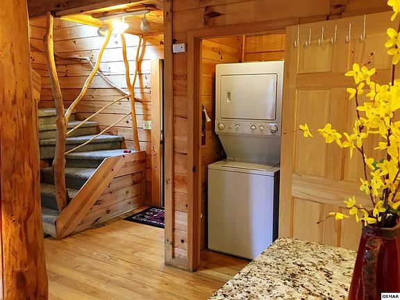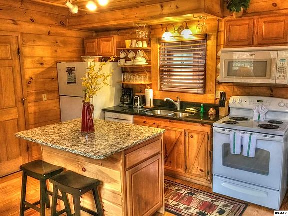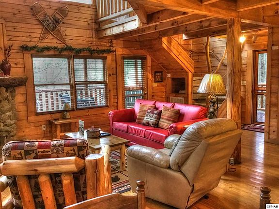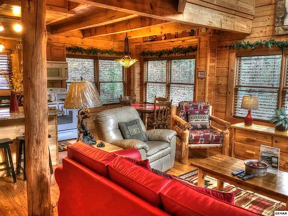 You are going to love this beautifully fully furnished custom built cabin in beautiful Brothers Cove Resort. From the time you pull up you feel like you are in your own private park nestled perfectly in the trees. You're going to love all of the outdoor features that come with this cabin. There are 2 swings, a fire pit with seating a beautiful picnic table even a park like grill you can cook outside and enjoy. This 2 bedroom 2.5 bath custom log cabin with 2 Car Garage with Bonus room above the garage. Features custom open floor plan with granite counters in the kitchen and on the island. Open dining and living room with a beautiful stone fireplace and wood burning stove. On the main level is a ½ bath and there is a stackable washer and dryer. The main level has a large deck with plenty of chairs and the Hot Tub that you will enjoy with your family and friends. The cabin has a beautiful custom staircase going up to the 2nd floor. The 2nd floor has a great deck with a log swing and log chair on it to enjoy your private morning coffee. The Master Bedroom and 2nd Bedroom are Located on the 2nd floor along with 2 full baths. The Master bedroom has access to the Game room. There is a Ping Pong Table and TV in the game room along with a large storage area. You also have access to the 2 Car Garage from the game room. This Cabin would make a great overnight rental cabin or even a permanent home. Cabin is being sold as is. Thank you for looking.