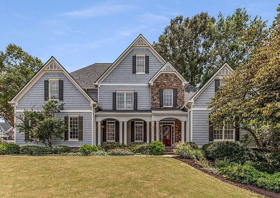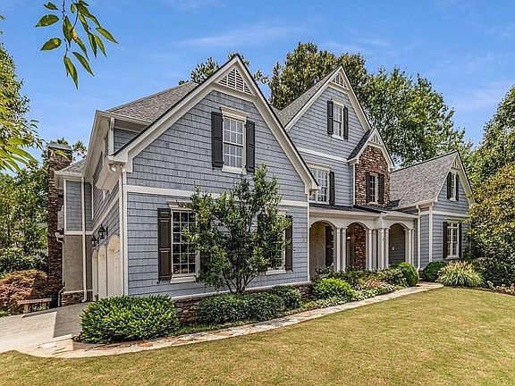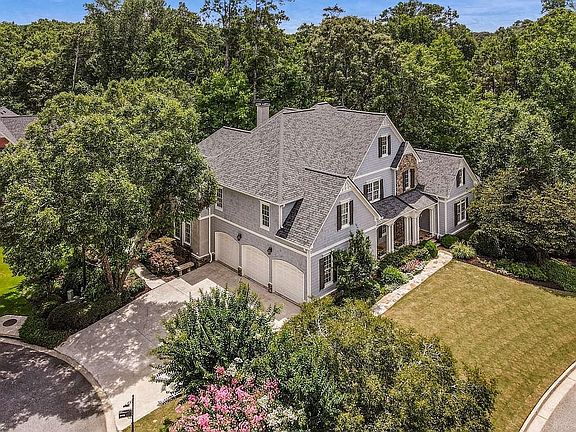 Prestigious Steve Fuller design, builder Steve Edison erected a custom French Traditional with shingle and stone clad exterior! Desirable master on main, oversized dining room, formal living room with coffered ceiling plus fireplace, bright white kitchen overlooks quaint keeping room with two-story stacked fireplace. Refinished hardwoods throughout main level plus new hardwoods in master bedroom and closet! Second level has additional three large bedrooms, media room and separate corner office overlooking pond! Recently upgraded terrace level boasts theater room, optional bedroom, plumbed bar area with room for counter, table and chairs! New full bath with shower and heated floor! New roof and recently new HVAC! Lots of square footage-.Additional 1650 square feet in basement!! Tons of storage areas! Premium lot overlooks Byrons Pond and water feature in quiet 14-home subdivision! Move-in ready! Fresh paint in and out! Fantastic location near shopping and excellent schools!