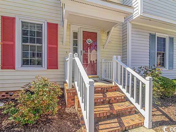 Fully furnished 2 bedroom 1.5 bathroom two-story townhome in the Canterbury Village community. Conveniently located in the center of Myrtle Beach, across from Broadway at the Beach and a few short minutes to the Ocean. Hardwood floors throughout the first level. You'll find the dining room and kitchen with a breakfast bar. French doors in the living room lead to the private back yard area. Upstairs are two bedrooms with carpet flooring, bathroom with two separate vanities and toilet room. One bedroom has vaulted ceilings and a skylight. Unit comes with 2 assigned parking spaces. Owners will have access to the community pool.