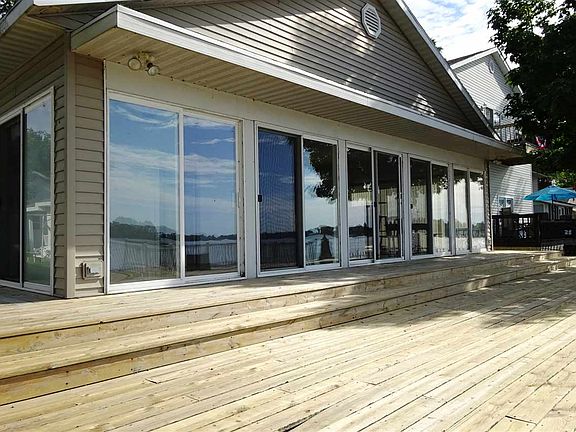 Sliding doors across entire 34' LR on lakefront, allows for panoramic water views! Redecorated in 2015, this 3 BR, 2 bath home has new flooring - bamboo, ceramic and carpet; 9' ceilings; Master suite w/WIC; Spacious oak kitchen w/center island/bar; Multi-deck levels expand your outdoor living; 24x24 detached 2-car garage; Plus, extra lots across street! Additional parcel #25-07-15-281-003.000-009