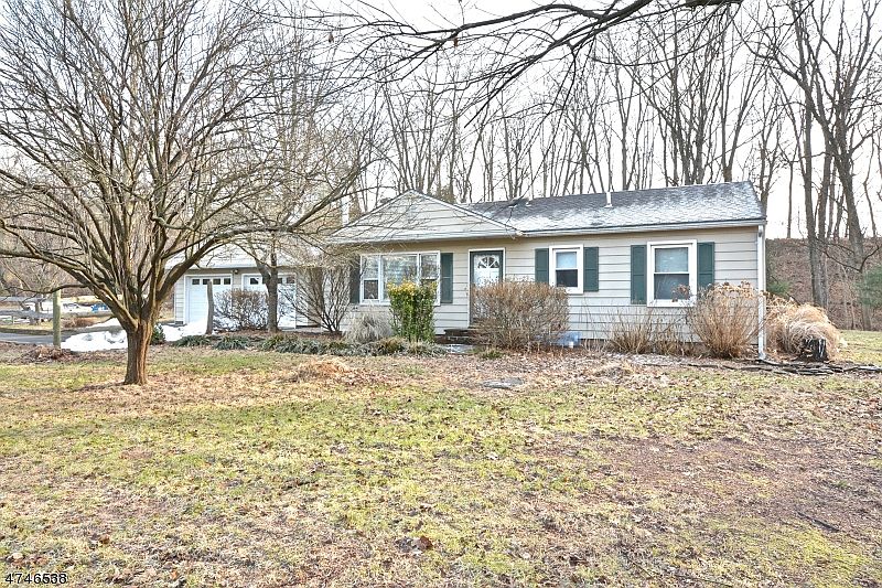 Updated ranch situated high above the Delaware River on a 1.5+ acre park-like setting with pond. Features a covered entry from detached oversized 2-car garage. Covered entry leads to updated kitchen that opens to spacious living room with wood stove. Master bedroom, guest bedroom and new bathroom complete the main level. Direct entry to finished basement features a 36' family room with projection screen and bar with refrigerator--great space for entertaining. New bathroom, laundry and utility room complete the basement area. Attic provides additional storage space. Large deck overlooks a serene private backyard. Winter views of the Delaware and less than 1/2 mile to boat launch and bike/walking path. Charming town of Frenchtown is nearby providing shopping, restaurants & art galleries. 4 BR septic.