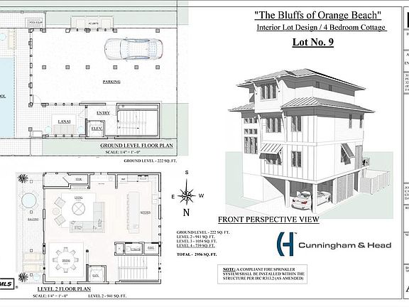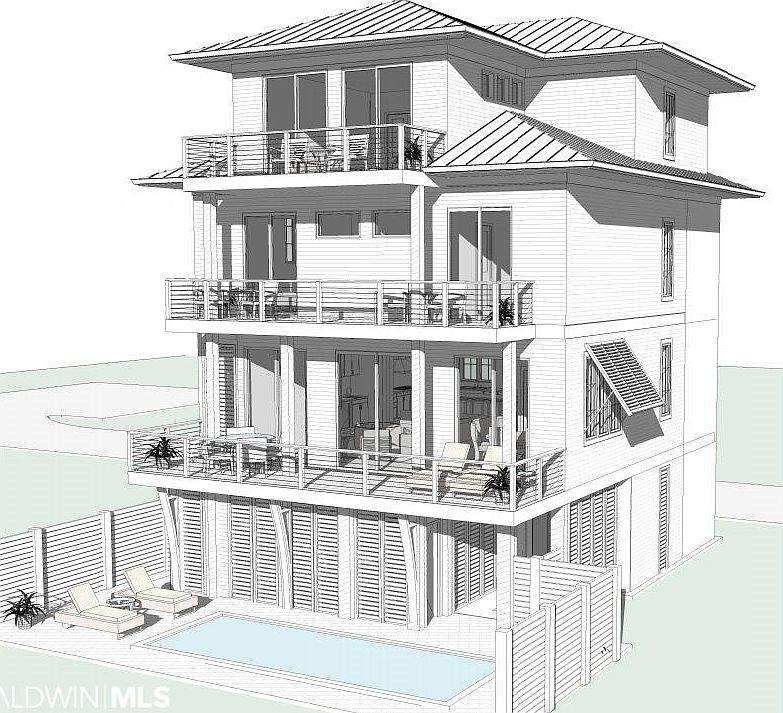 The Bluffs is an exclusive new beach front development in Orange Beach! Lot 9 will have four bedrooms and four & 1/2 baths. Each lot at The Bluffs will feature gold fortified construction by Phil Harris, a top floor master suite, private gunite pool with lanai & grilling area and 1 parking space for each bedroom along with fiber optic internet capability. Each home will have wood floors throughout, an elevator to all floors, impact resistant doors & windows, solid core interior doors, metal roof, hardi board exterior, outdoor shower & multiple lockable storage closets. Kitchens will offer a large island, quartz counter tops, pantry, custom cabinetry with Wolf/Sub-Zero/Thermador appliances. There will be a large utility/laundry room, wet bar, 10' ceilings on main level, 9' ceilings for bedroom levels. Baths will feature tile floors and showers with quartz counters. All non gulf-front residences will have a community dune walk-over. Each home in The Bluffs will offer one parking space per bedroom plus additional community parking for guests. The Bluffs will require a 3 night minimum rental. The Bluffs are unfurnished, photos and drawings are representative.
