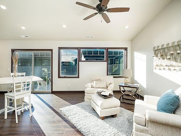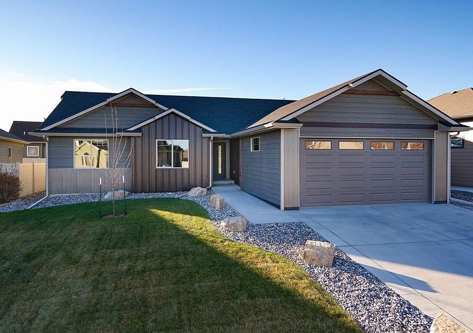 One level living with landscaping, sprinklers & fence included! Super features with metal accent on exterior, oversized double garage (32x18 with 8' 18" door) , all finished! Master bedroom has double sink vanity, extra large & sunny walk-in closet, private 3/4 bath, 2 more bedrooms & bath on opposite end. Love the cool tile & color selections. Lots of tile, laminate wood floors. Big fenced yard. Show anytime!