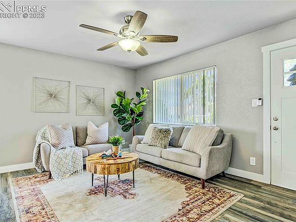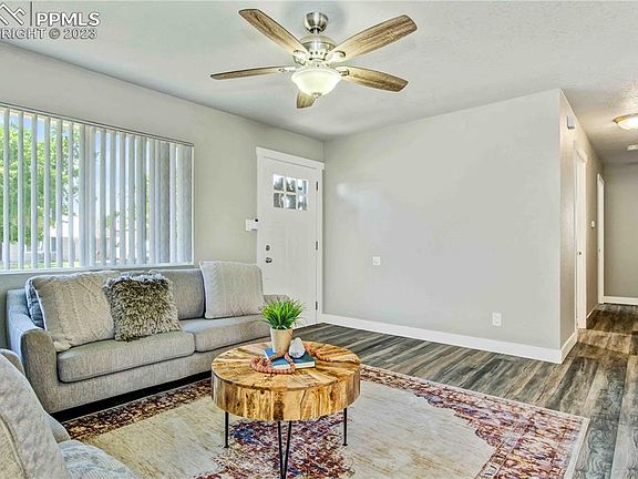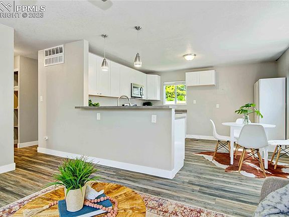 Welcome HOME! This AMAZING rancher has undergone a stunning remodel in 2018, making it MOVE-IN READY just for YOU!! Its convenient location provides easy access to Academy Blvd, downtown, parks, and shopping, while offering MOUNTAIN VIEWS right from your front yard. Prepare to FALL IN LOVE with the charm of this true ranch-style floorplan, designed for comfortable one-level living. As you step inside, you'll be greeted by the bright and inviting living room, adorned with tasteful LVT flooring. The open layout seamlessly connects the living room to the dining area and a beautiful kitchen. The kitchen boasts ample counterspace, a convenient breakfast bar, newer cabinets, and stainless steel appliances ready for some action! This delightful home offers three bedrooms, providing versatility for your lifestyle. The full bathroom has been gorgeously remodeled, showcasing exquisite attention to detail. Additionally, there is a convenient laundry area equipped with a washer and dryer, that leads to the backyard. Beyond its charming aesthetics, this home has received significant updates to ensure long-term comfort. In 2020, new attic insulation and a water heater were installed, followed by a furnace replacement in 2019. The electrical panel and roof were both updated in 2018, showcasing the care and attention given to this property. BRAND NEW FRIDGE! Step into the fully-fenced, spacious backyard, which presents a blank canvas for your future home garden or lush lawn. With a little love and a green thumb, this space will transform into a true oasis, perfect for relaxing or entertaining guests. DON’T MISS OUT on this incredible opportunity to making this HOUSE YOUR HOME!!