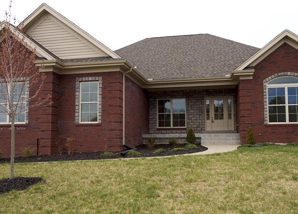 New construction just completed! Brick/Stone, 1-story, split ranch layout located on Grand Lakes Drive in the Grand Lakes subdivision located in a prime location off of Blankenbaker near I-64. 3 bedrooms, 2 full bathrooms, Master bedroom/bathroom on 1st, hardwood floors, granite countertops, fireplace, unfinished basement with egress window/rough-in, covered porch, irrigation and more!