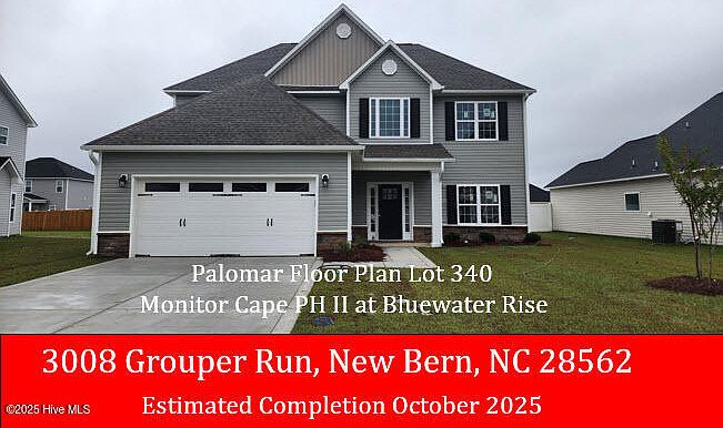 ''Palomar'' floor plan is ''Move-In Ready'' in Monitor Cape phase 2 of Bluewater Rise. Builder offering up to $10,000 buyer's closing cost assistance with use of preferred closing attorney & lender. This impressive floor plan features a two-story foyer entry, large family room, formal dining room, and open kitchen area w/ breakfast nook and keeping room w/ gas log fireplace. Granite counter tops & covered back porch. Quick commute to Cherry Point MCAS and Downtown New Bern.