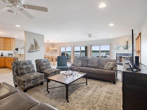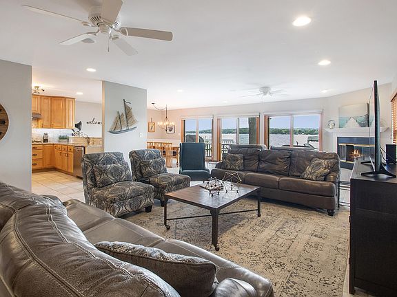 The moment you open the door the lake draws you in. A total of 6 bedrooms and 4 baths includes 2 lakeside master suites. Take in the tranquil views of Lake Elizabeth from the large lakeside deck. 60' of sandy bottom level frontage. Open floor plan includes kitchen, dining room, and family room with gas fireplace. Updates in 2017 include: kitchen, new appliances, light fixtures throughout home, carpet, window treatments, faucets, and installation of granite counter tops. New shingles on the roof in 2018. Deck was just painted/stained, and asphalt driveway sealed in 2020. The 2-car garage has room for all your lake toys and extra parking in the large driveway. Lake Elizabeth is a 725-acre spring fed lake where you can enjoy boating, fishing, and swimming. Close to Lake Geneva & Wilmot Mt.