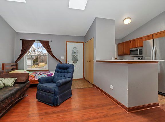 Call your own this meticulously maintained 2-bed, 1-bath Island Lake Duplex offering modern comfort and style. Inside, the charming fireplace warms the wood-floored living space. Updated all in the PAST YEAR: stainless steel appliances, windows, and doors, A/C, washer and dryer, and both skylights replaced. All the heavy lifting is done, only thing left is to move in. The location is ideal, with easy access to shopping and the Chain O' Lakes for outdoor activities. A serene neighborhood park, playground, and lake create a secure and peaceful community.