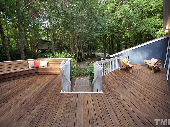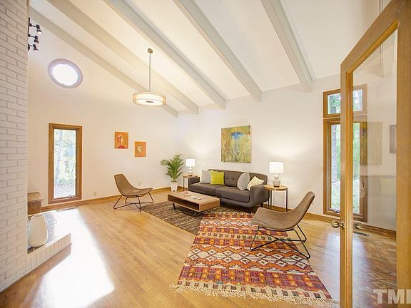 Prince's Purple Rain topped the charts the year this show-stopper was built. With its groovy multi-levels & vaulted ceilings, you won't want to be just a weekend lover. This house just begs you to plop down w/a good book on one of its nooks or benches, inside & out. Don't miss the tree swing! Updated kitch & baths. Freshly painted inside & out. New roof, new HVAC. 2-car gar. One of the coolest yards in Duke Forest. Honey, I know, I know! Sounds too good to be true. But it's not. It's here waiting for you.