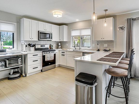 Beautifully updated 3 bedroom, 2 bath split level that sits on a beautiful lot with endless possibilities, located across the street from the river where you can enjoy views and breezes. This 150 X 125 (2 parcels) can be divided and sold separately. Walk to downtown McHenry where you can enjoy restaurants, shopping and Metra. 2022 updates include new kitchen, appliances, floors, doors, trim, hardware and light fixtures. More storage than you will need including an extra large 2 car garage and shed. You will not be disappointed.