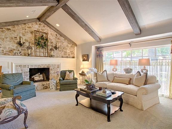 Enchanting street presence on one of Quail Creek's prettiest streets. This special traditional home offers many design details and a flexible floor plan to accommodate many lifestyles. A wide brick gallery entry opens into the heart of the home - a great room with a beamed cathedral ceiling, handsome stone fireplace wall and an expansive window overlooking the treed backyard. Other rooms include a separate living or dining room plus a study lined with bookshelves. A special feature is an ample laundry room filled with storage and great for crafts or art. The downstairs master has room for a true sitting area with a large sunny bathroom with his and her vanities and walk-in closets. Two bedrooms upstairs share a roomy connecting bath. Outside you'll find mature trees shading an expansive slate patio - perfect for entertaining a crowd. This home is a perfect backdrop for an urban farmhouse or a "collected" design aesthetic . Most of all, it says "home"!
