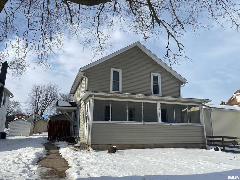 3-4 bedroom home with a fenced in yard and detached 2 car garage! Main level has a 3 season porch, open living/dining room, large kitchen, full bathroom, laundry hookups, and bedroom. Upstairs has a full bathroom and 2-3 bedrooms. Fenced in yard leads to a detached 2 car garage with alley access. Roof on house was new in 2019 and roof on garage was new in 2021.