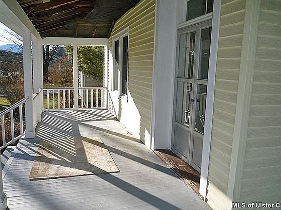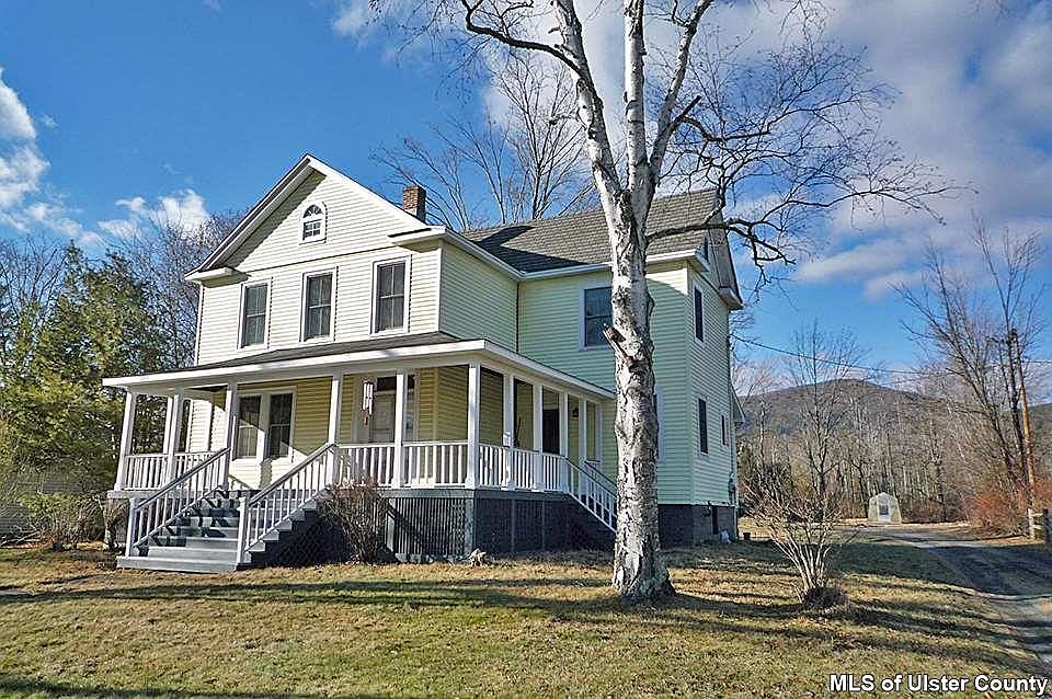 Spacious and special Shokan farmhouse at an affordable price! This gracious 1910 home has all the original details you desire, including hardwood floors, antique bannisters, original trim and French style front doors. It also has all the updates you want, from a 40 year roof to all new Anderson windows, new septic system, rebuilt front porch, and efficient woodstove. There is plenty of room to grow in this bright and sunny home, with a large eat in kitchen, formal dining room, and living room with an original leaded glass window and the cozy woodstove. The den could also be a ground floor bedroom with adjacent full bath. The formal center hall entry leads upstairs to three good size bedrooms and a full bath. There are nice mountain views from the two back bedrooms, and a small front room would be a great office space. A huge three-car garage with workshop and power, a large shed, a small greenhouse and another storage shed complements the house. This property is also zoned for business, so you can put all these outbuildings to good use. Recently renovated by a talented craftsman, with just a few finishing touches needed. Located within walking distance of shops and restaurants, with the proposed rail trail right across the way. Minutes to Woodstock and Phoenicia too!