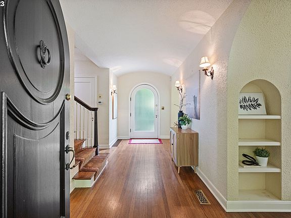 Current price gives buyers the opportunity to reimagine the spacious original kitchen, create a primary suite upstairs (the small nursery is space you can repurpose!), and continue to develop the huge basement (separate stairwell and entrance--great for guest quarters). Already done for you: newly finished all tile basement bath (2023), new A/C (2019), water heater and furnace (2015), water main (2014), cedar shake roof (2009)... plus many other upgrades including new driveway, new gas range, copper gutters, rebuilt retaining wall, and more. Your vision for updates gives you limitless upside potential in this Eastmoreland architectural masterpiece. There is nothing else like this house in the neighborhood, with its incredible 18 x 21 living room graced with windows on three sides, and its exquisite repeated theme of archways, including a stunning barrel vault in the long foyer and living room. Huge walls of windows flood the house with light, while the setting deep on the lot gives privacy. Option for main level bedroom suite--a rarity for this vintage. Upstairs are two more large bedrooms and a chic remodeled bath, plus a fantastic surprise: a media room/library that can be used as an additional bedroom. Multiple outdoor areas with established landscaping invite you to relax with a good book or good friends; when you come home, you'll appreciate the extraordinary convenience of an oversized attached garage, a rarity for the neighborhood. Shopping and dining are half a mile away on SE Woodstock, or hop over to Sellwood/Moreland for even more options. Take the MAX Orange Line downtown or out to Milwaukie, enjoy a round of golf at the Eastmoreland Golf Course, or immerse yourself in nature at Crystal Springs Rhododendron Gardens or Reed Canyon. Take advantage of the 87 Bikescore, and get on the Springwater Trail to explore the city, or just enjoy the beauty of one of Portland's destination neighborhoods. [Home Energy Score = 1. HES Report at https://rpt.greenbuildingregistry.com/hes/OR10036950]
